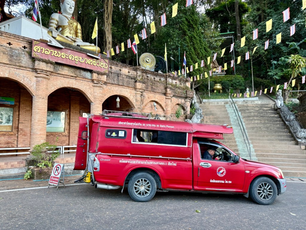 Out vehicle was one of the famous red trucks of Chiang Mai – they are everywhere, but most suited for shorter trips…